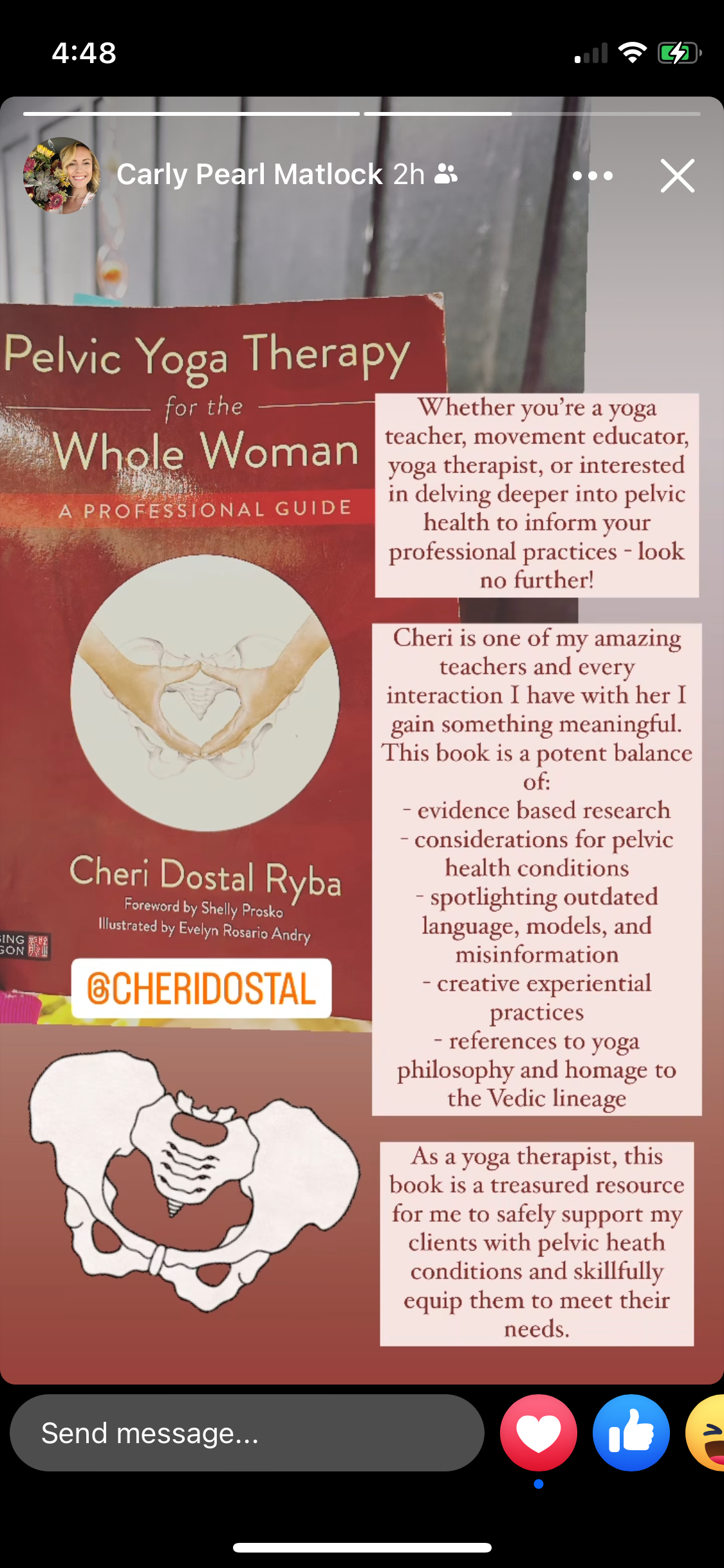 Purchase your copy of Cheri’s book, Pelvic Yoga Therapy for the Whole Woman through the publisher directly, Singing Dragon with the code RYBA15 to save 15%! Personally, I’m choosing not to purchase through Amazon currently, but you can of course find the book there, too. Leave a review, thank you!
